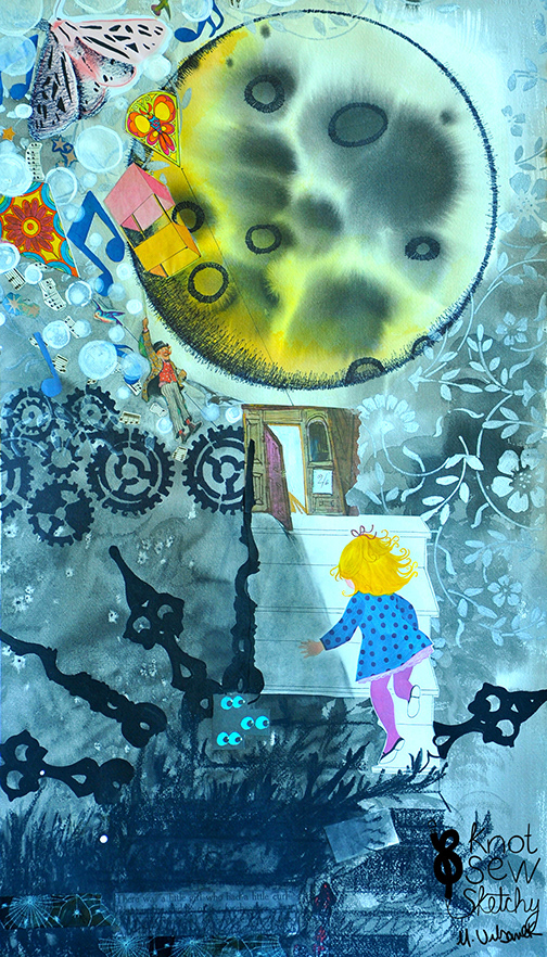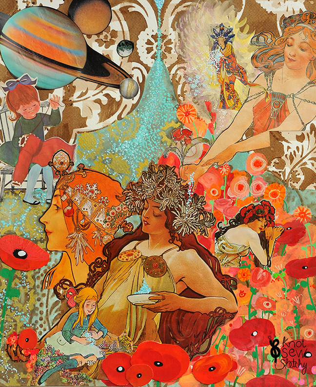 My multi media collage works illustrate whimsically dark playgrounds, where time is essential, but is also an illusion. These "Vignettes" are characterized as brief but powerful accounts or scenes.